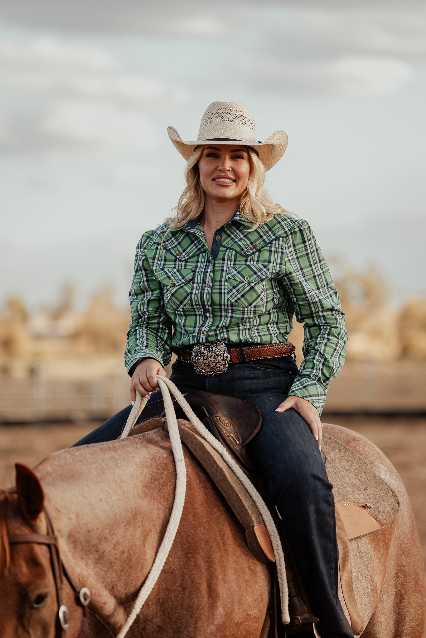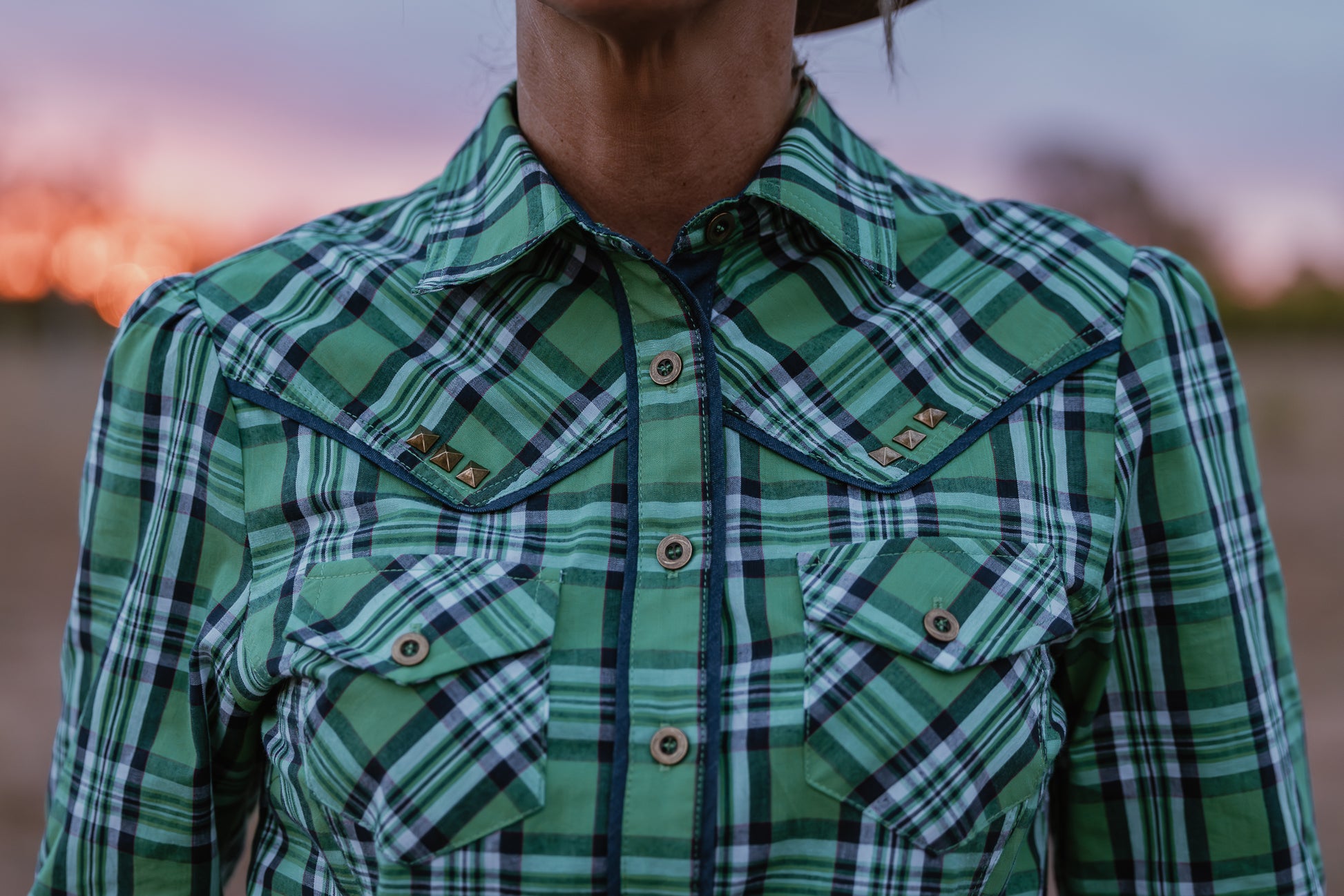 For the classic plaid girls that still like some "edge". Borderline is the Ladies Boutique Western Shirt crafted from 100% cool and crisp cotton. Look closer to find denim piping and underlay, with brass accents to really make her pop.
